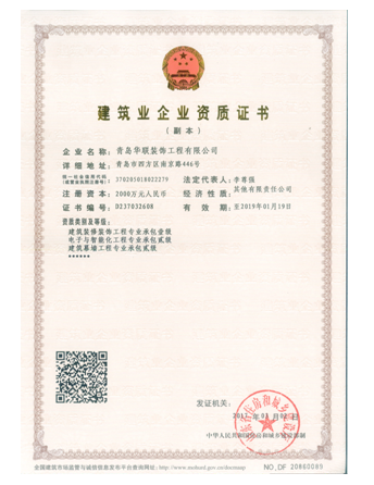 至此,青島華聯(lián)裝飾擁有專業(yè)承包資質(zhì)三項(xiàng):建筑裝修裝飾工程專業(yè)承包壹級(jí)、電子與智能化工程專業(yè)承包貳級(jí)、建筑幕墻工程專業(yè)承包貳級(jí);設(shè)計(jì)資質(zhì)一項(xiàng):建筑裝飾工程設(shè)計(jì)專項(xiàng)甲級(jí)。