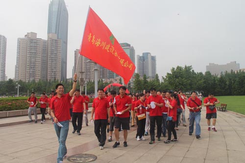 青建集團(tuán) “青建股份杯” 2015年職工健身跑(健步行)活動(dòng)6月27日(周六)上午9:00在五四廣場(chǎng)“五月的風(fēng)”雕塑下舉行開幕式,共有來(lái)自青建系統(tǒng)各單位的500余名員工踴躍參加了本次活動(dòng),青建集團(tuán)執(zhí)行總裁朱廣君致辭并為方隊(duì)鳴哨開跑。