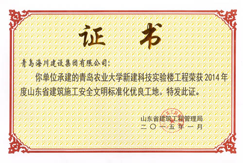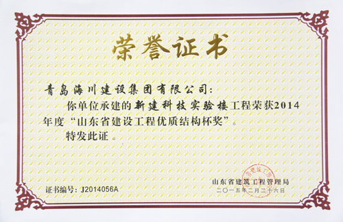 最近,七分公司青島農(nóng)業(yè)大學(xué)新建科技實(shí)驗(yàn)樓工程先后從山東省建筑工程管理局捧回了分別于2015年一月和二月頒發(fā)的兩項(xiàng)省級(jí)榮譽(yù)證書(shū)——榮獲“2014年度山東省建筑施工安全文明標(biāo)準(zhǔn)化優(yōu)良工地”和榮獲“2014年度山東省優(yōu)質(zhì)結(jié)構(gòu)杯獎(jiǎng)”。消息傳到工地,大家歡欣鼓舞,一年多的努力終于結(jié)出了豐碩的成果。