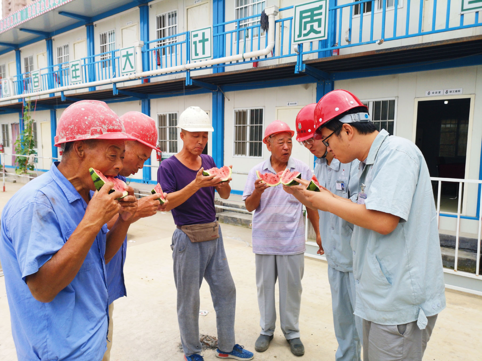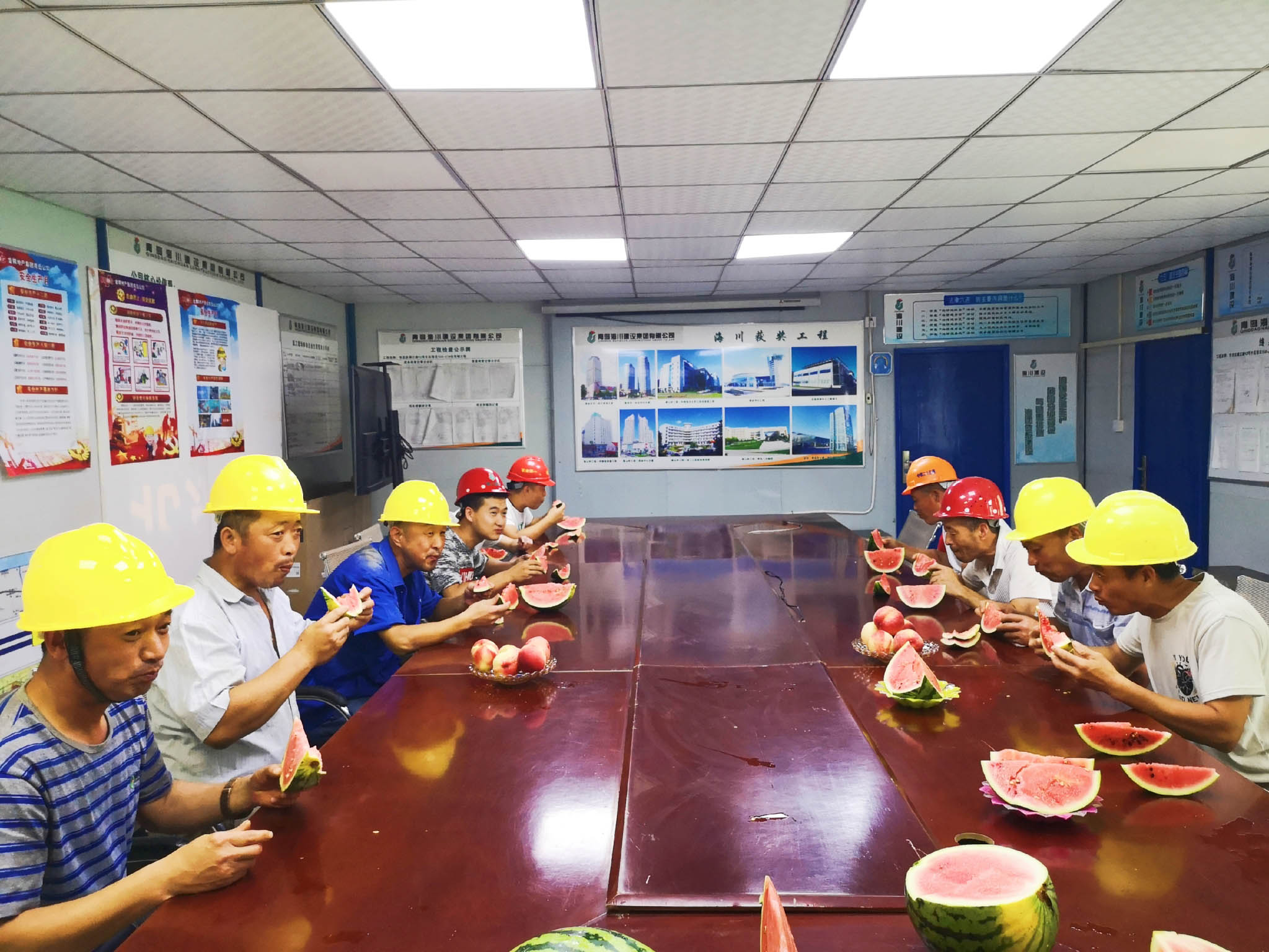 7月9日集團(tuán)工會(huì)走進(jìn)長沙路人才公寓項(xiàng)目部、北澗社區(qū)安置區(qū)項(xiàng)目部、富爾瑪項(xiàng)目部、鎮(zhèn)江路12號片區(qū)項(xiàng)目部,為一線工人送去海川農(nóng)林生態(tài)園的西瓜、桃子等等解暑降溫慰問品。