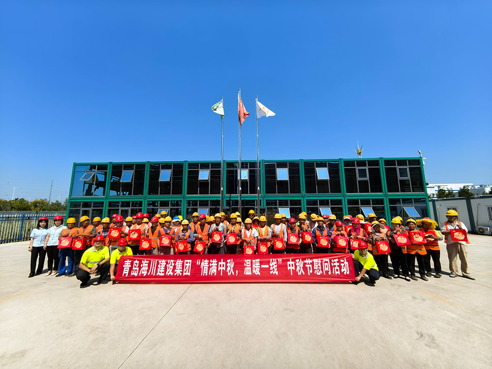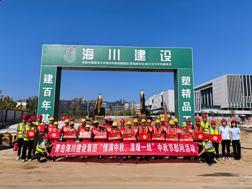 平分秋色一輪滿,長伴云衢千里明。花好月圓,家國團圓,在闔家團聚之時,依然有這樣一群可愛的人,他們不畏辛勞,在鋼筋水泥前辛勤施工,在黑夜里排查安全隱患,在節(jié)假日期間依然堅守崗位。為進一步聚焦生產(chǎn)一線,在中秋佳節(jié)到來之際,青島海川建設(shè)集團工會深入施工現(xiàn)場,開展走訪慰問活動。